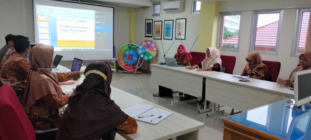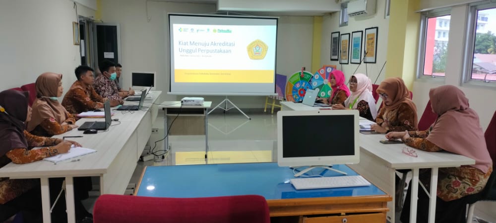 Kegiatan Pendampingan Persiapan Re-Akreditasi Perpustakaan bersama tiga orang Narasumber dari Perpustakaan Poltekkes Kemenkes Semarang yaitu Ibu Hariyanti, S. Sos, SS., Bapak Erwan Setyo Budi dan Bapak Waris Agung Widodo dilaksanakan pada hari Selasa tanggal 13 September Tahun 2022 di Ruang Pertemuan Perpustakaan Terpadu Polkeslu. Kegiatan ini membahas tentang enam komponen akreditasi perguruan tinggi yaitu
